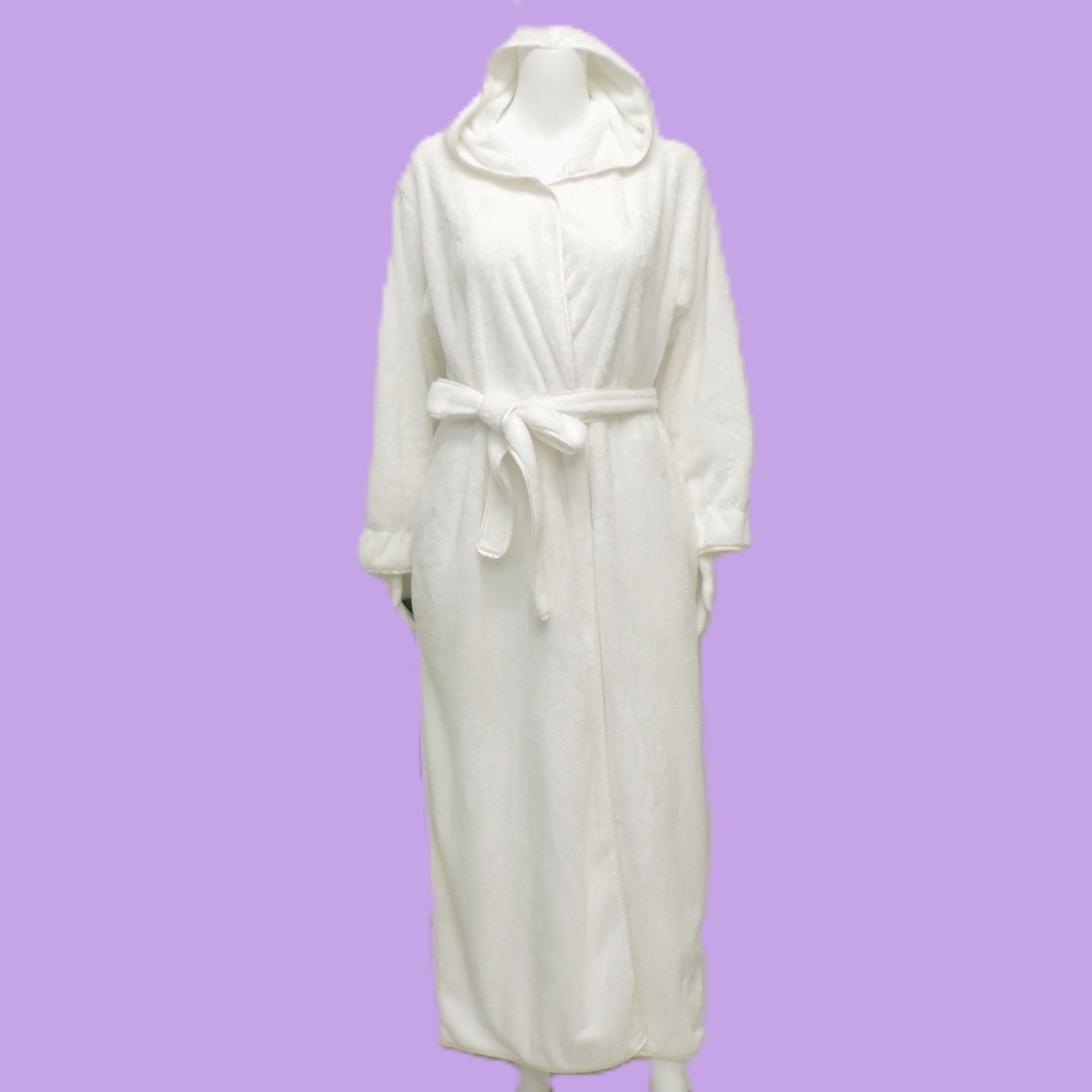 - Two sided minke hooded long robe with ruffle sleeves.